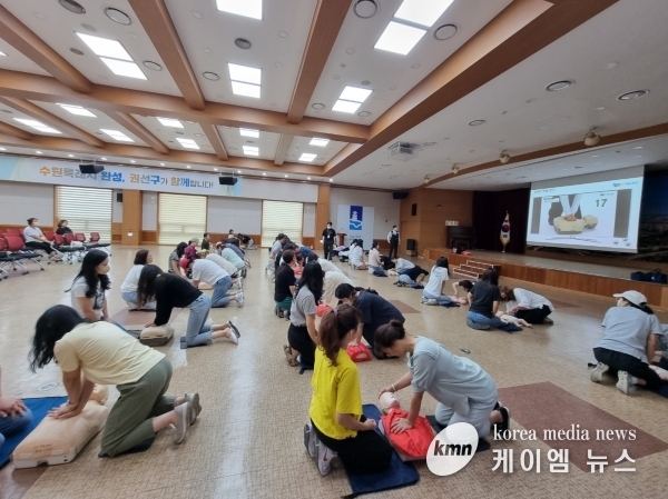 (케이엠뉴스) 수원시가 14일 권선구청 대회의실에서 국공립어린이집 학부모를 대상으로 심폐소생술 교육을 했다.