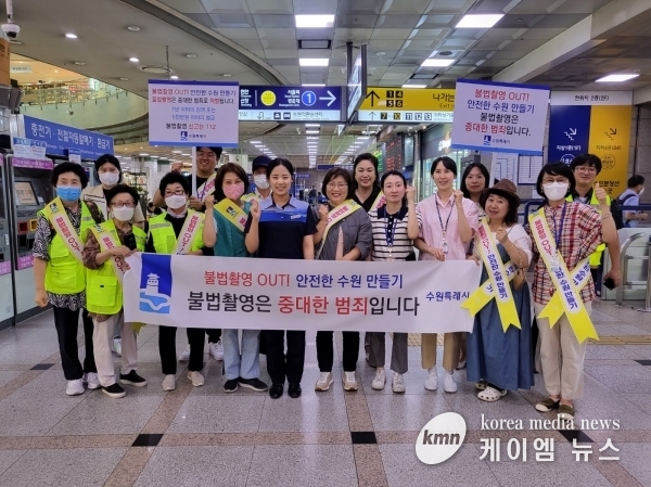 (케이엠뉴스) 수원시가 15일 경찰·시민·한국철도공사와 함께 수원역 공중화장실·광장에서 ‘공중화장실 불법촬영 예방 캠페인’을 펼쳤다.