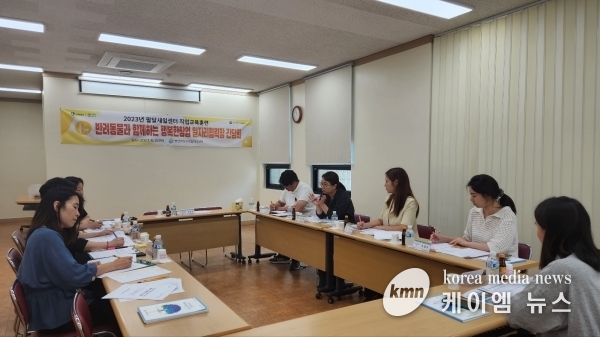 (케이엠뉴스) 수원시 팔달여성새로일하기센터가 22일 센터에서 ‘직업교육훈련 반려동물과 함께하는 행복한 창업 일자리협력망 간담회’를 열었다.