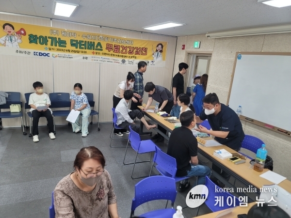 (케이엠뉴스) 수원시가 ㈜케이닥, 수원시다문화가족지원센터와 협력해 25일 관내 거주 다문화가족·외국인주민 200여명을 대상으로 무료 건강검진을 진행했다.