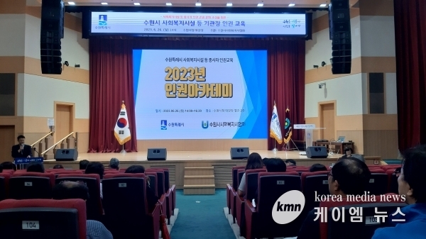 (케이엠뉴스) 수원시가 26일 시청 대강당에서 사회복지시설 내 인권 존중 문화를 조성하기 위해 관내 사회복지시설 등 기관장을 대상으로 인권 교육을 열었다.