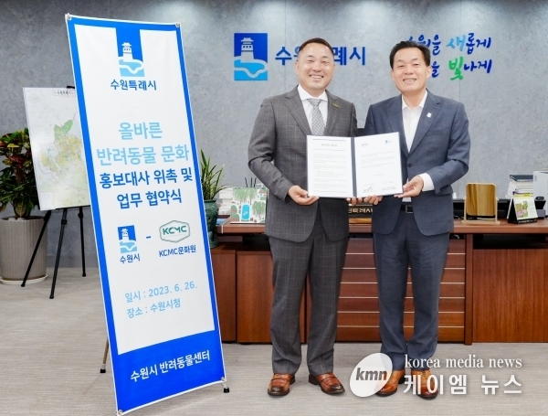 위촉식 후 수원시와 KCMC문화원은 ‘수원시 반려동물 교육도시 발전을 위한 업무협약’을 체결하고 협력을 약속했다.