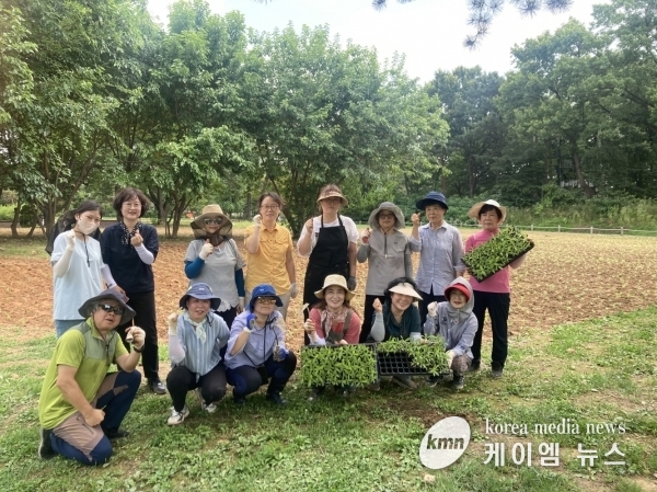 (케이엠뉴스) 수원시농업기술센터가 시민 30여명과 함께 28일 탑동시민농장에 천일홍 모종 5만 본을 식재해 2200㎡ 규모의 천일홍 경관 단지를 조성했다.