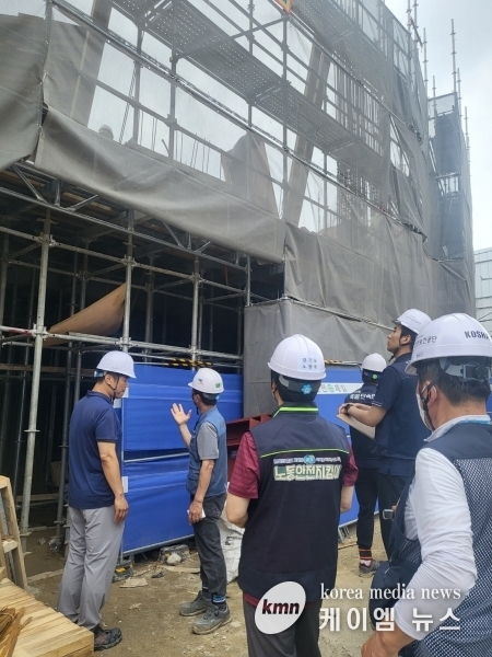 (케이엠뉴스) 수원시와 수원시 노동안전지킴이, 경기도, 산업안전보건공단이 28일 팔달구 건설공사 현장을 찾아 ‘2023년 하절기 산재예방 합동 안전점검’을 했다.