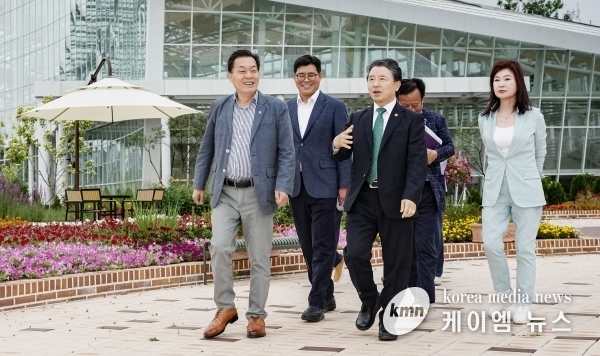 (케이엠뉴스) 남성현 산림청장이 28일 일월수목원과 농업역사문화공원에 조성된 손바닥정원을 방문하고 수원시 산림·녹지 분야 사업 현황을 살폈다.