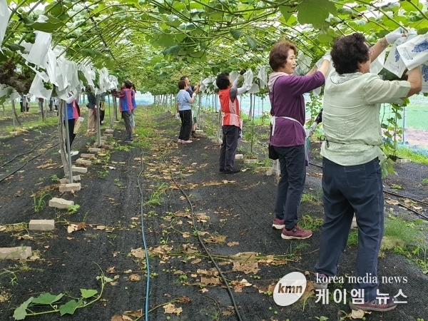 (케이엠뉴스) 수원시농업기술센터가 육성하는 생활개선수원시연합회가 권선구 구운동 포도재배 농가에 일손돕기 자원봉사를 했다.