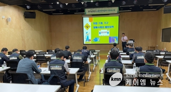 (케이엠뉴스) 수원시가 29일 광교푸른숲도서관 강당에서 경기남부권역 노동안전지킴이와 관리자 등을 대상으로 ‘노동안전지킴이 역량강화 전문화교육’을 열었다.