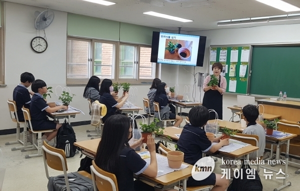 지난 6월 1일 첫 교육을 했고 7월 12일까지 총 7개 학교 중학생 280여명을 대상으로 탑동시민농장과 교육을 신청한 중학교에서 교육을 진행한다.