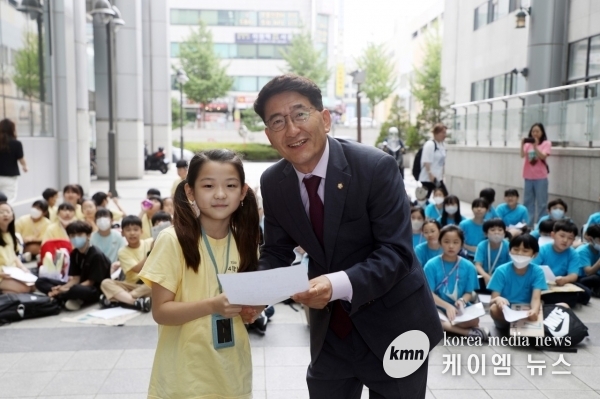 (케이엠뉴스) 김기정 수원특례시의회 의장은 5일 영통구 신영초등학교 학생들에게 ‘어린이 환경 캠페인 요구서’를 전달받았다.