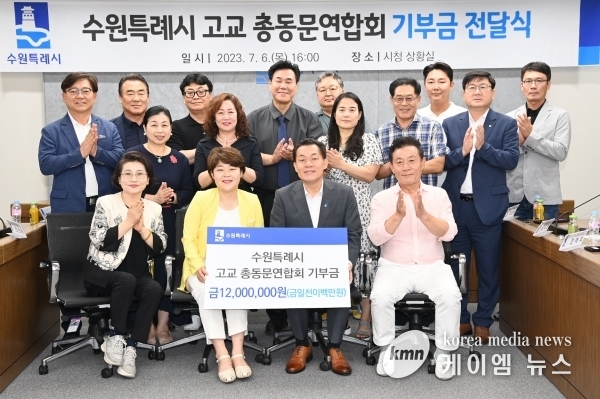 (케이엠뉴스) 수원특례시 고교 총동문연합회가 “관내 12개 고등학교에 지역사회 인재 양성을 위한 장학금으로 전달해 달라”며 수원시에 1200만원을 기탁했다.