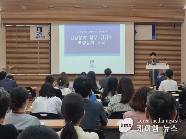 (케이엠뉴스) 수원시가 7일 수원시홍재복지타운 교육장에서 ‘2023 찾아가는 보건복지서비스’ 활성화를 위한 건강 분야 업무 담당자 역량강화 교육을 했다.