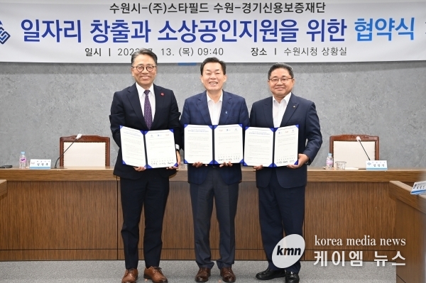 (케이엠뉴스) 수원시가 ㈜스타필드 수원, 경기신용보증재단과 협력해 일자리를 창출하고 소상공인을 지원한다.