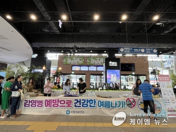 (케이엠뉴스) 수원시보건소가 18일 수원버스터미널 대합실에서 ‘건강한 여름나기를 위한 감염병 예방 캠페인’을 펼쳤다.