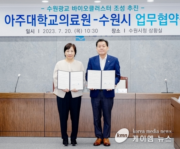 (케이엠뉴스) 수원시와 아주대학교의료원이 ‘수원광교 바이오클러스터’ 조성과 보건의료 R&D생태계 활성화를 위해 적극적으로 협력하기로 했다.