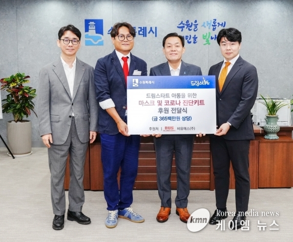 (케이엠뉴스) 비유에스가 “수원시 취약계층 아동에게 전달해 달라”며 월드비전 경기남부사업본부에 마스크·코로나19 진단키트 등 3억 6500만원 상당 물품을 후원했다.