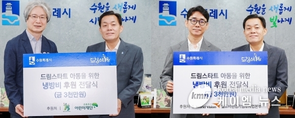 (케이엠뉴스) 초록우산어린이재단 경기지역본부·경기후원회와 월드비전 경기남부사업본부가 수원시 드림스타트 아동 가정에 냉방비 3000만원을 각각 후원했다.
