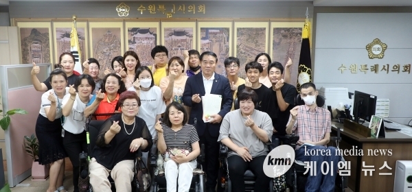 (케이엠뉴스) 이재식 수원특례시의회 부의장은 25일 소담장애인자립생활센터‘권리중심 중증장애인 맞춤형 공공일자리’사업 참여자들에게 특별한 엽서를 전달받고 소통의 시간을 가졌다.
