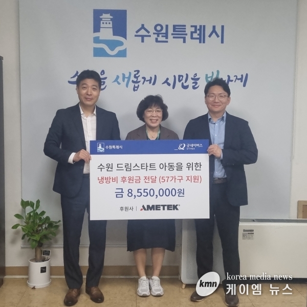 (케이엠뉴스) ㈜아미텍 코리아가 굿네이버스 경기지역본부를 통해 수원시 드림스타트 아동 가구에 냉방비 855만원을 기부했다.