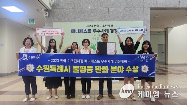(케이엠뉴스) 수원시가 27일 ‘2023년 전국 기초단체장 매니페스토 우수사례 경진대회’에서 ‘불평등 완화 분야’ 최우수상을 받았다.