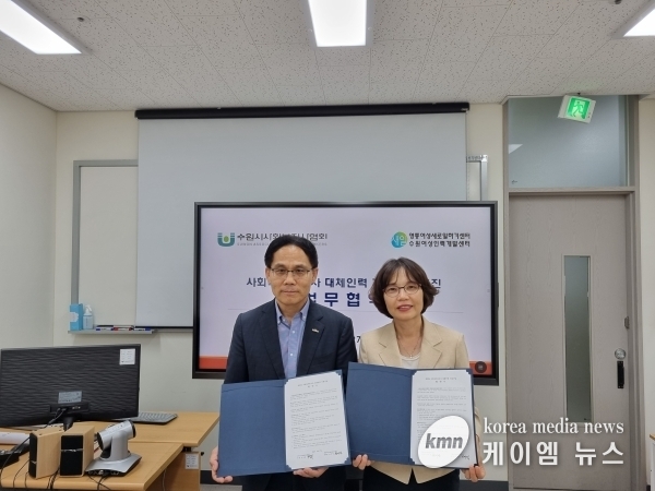 (케이엠뉴스) 영통여성새로일하기센터는 수원시사회복지사협회와 대체인력지원사업 협약식을 7월28일에 개최했다.