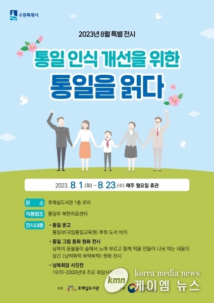 (케이엠뉴스) 수원시 호매실도서관이 1일부터 23일까지 도서관 로비에서 특별전시 ‘2023 통일을 읽다’를 연다.
