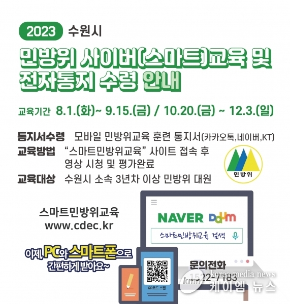 (케이엠뉴스) 수원시가 2023년 민방위 사이버교육 본교육을 이수하지 않은 대원을 대상으로 보충 교육을 한다.