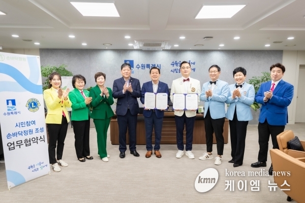 수원시는 11일 시청에서 국제라이온스클럽 354-B지구 1지역과 ‘함께 만들고 가꾸는 시민참여 손바닥정원 조성’ 협약을 체결했다.