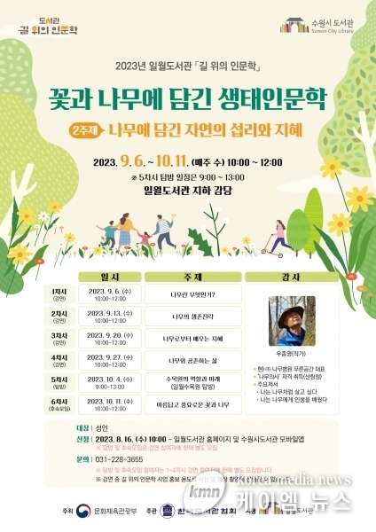 (케이엠뉴스) 수원시 일월도서관이 ‘2023년 길 위의 인문학 2주제-나무에 담긴 자연의 섭리와 지혜’에 참여할 시민을 16일 오전 10시부터 선착순으로 모집한다.