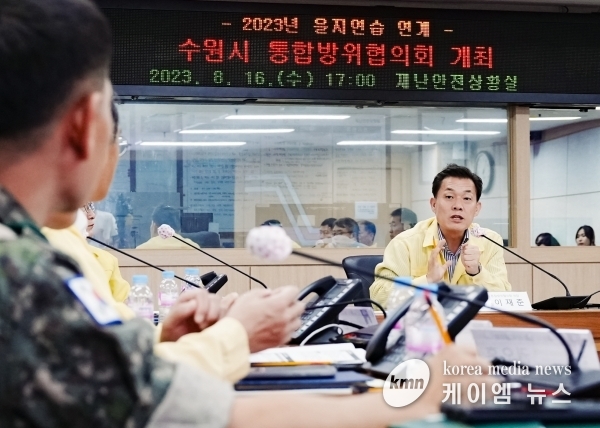 수원시는 지난 16일 오후 5시 수원시청 본관 지하 1층 재난안전상황실에서 ‘2023년 을지연습 연계 수원시 통합방위협의회’를 개최했다.