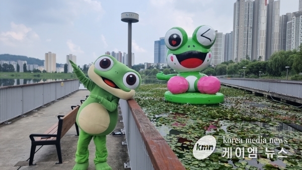 수원시는 9월11일까지 광교호수 초등학교 앞 원천호수 위에 ‘수원이 조형물’을 전시한다.