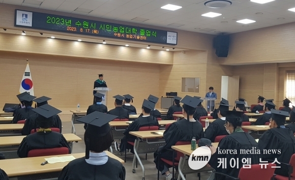 (케이엠뉴스) 수원시농업기술센터는 지난 17일 오후 농업기술센터 대강당에서 ‘2023년도 수원시 시민농업대학 졸업식’을 열고 졸업생 44명을 배출했다.