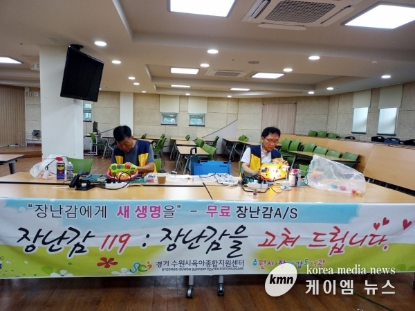 (케이엠뉴스) 수원시육아종합지원센터가 운영하는 ‘장난감도서관’이 고장 난 장난감을 무료로 수리해 주는 ‘장남감에게 새 생명을~ 장난감 119’ 행사를 열어 시민들에게 호응을 얻고 있다.