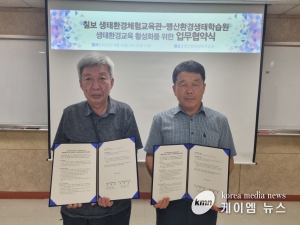 이날 협약식에는 류현상 칠보 생태환경체험교육관장, 정병준 맹산환경생태학습원장 등이 참석했다.