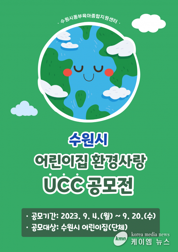 (케이엠뉴스) 수원시동부육아종합지원센터는 9월 4일부터 20일까지 ‘수원시 어린이집 환경사랑 UCC 공모전’을 연다.