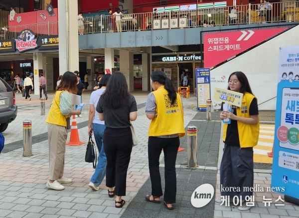 (케이엠뉴스) 수원시 8월 31일 kt 위즈와 삼성라이온즈의 경기가 열린 수원KT위즈파크에서 시민들을 대상으로 모바일 시정참여 플랫폼 ‘새빛톡톡’을 홍보했다.