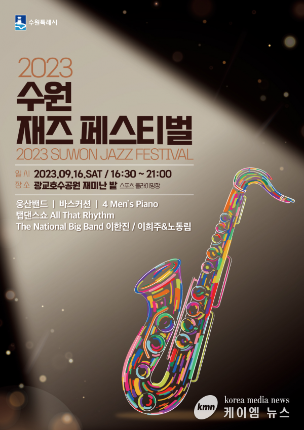 (케이엠뉴스) 최정상급 재즈 보컬리스트와 연주자들을 만날 수 있는 ‘2023 수원재즈페스티벌’이 9월 16일 오후 4시 30분부터 9시까지 광교호수공원 재미난 밭에서 열린다.