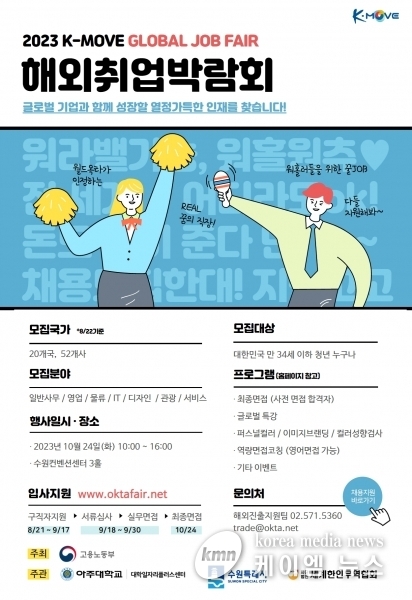 참여를 원하는 청년은 9월 17일 오후 6시까지 ‘2023 K-MOVE 해외취업박람회’ 홈페이지에서 지원하면 된다.
