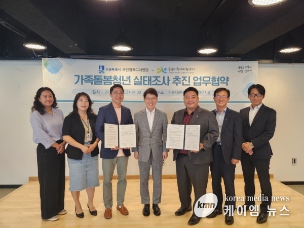 (케이엠뉴스) 수원시 국민정책디자인단과 수원시청년지원센터가 8일 인계동 수원시청년지원센터에서 ‘가족돌봄청년 실태조사 추진을 위한 업무협약’을 체결하고 협력을 약속했다.