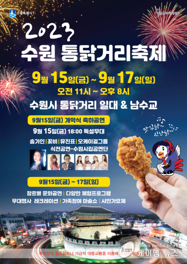 (케이엠뉴스) 수원시가 9월 15~17일 팔달구 남수동 수원 통닭거리 일원에서 ‘2023 수원 통닭거리 축제’를 개최한다.
