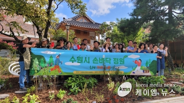 (케이엠뉴스) 수원시가 한국토지주택공사, 환경조경발전재단, 새빛수원 손바닥정원단, 행궁동 상인회와 함께 18일 화서사랑채에 ‘손바닥정원’을 조성했다.