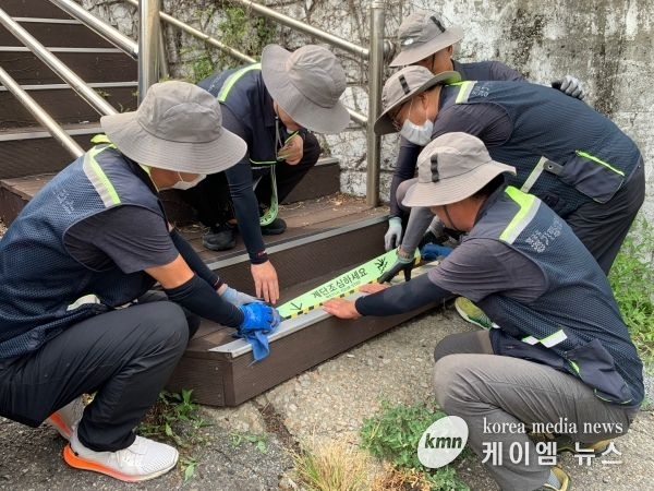 (케이엠뉴스) 행궁동 경기행복마을관리소는 어르신들이 야간에 계단에서 사고를 당하는 것을 예방하기 위해 25일 행궁동 어두운 계단 10개소에 야광 계단 안전 스티커를 부착했다.