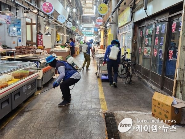 (케이엠뉴스) 수원시 권선구보건소가 25일 추석 명절 많은 시민의 방문이 예상되는 권선종합시장과 수원 농수산물시장 곳곳을 방역 소독했다.
