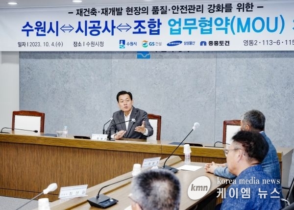 (케이엠뉴스) 수원시가 재건축·재개발 사업 시공사, 사업시행자와 건설현장 품질·안전 관리 강화를 위해 힘을 모은다.