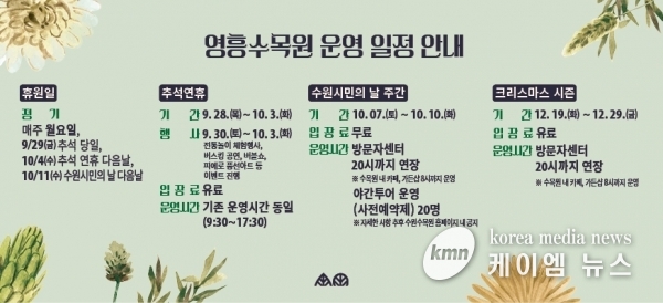 (케이엠뉴스) 수원수목원이 수원시민의 날을 맞아 영흥수목원은 7~10일 일월수목원은 8~10일 무료로 개방한다.