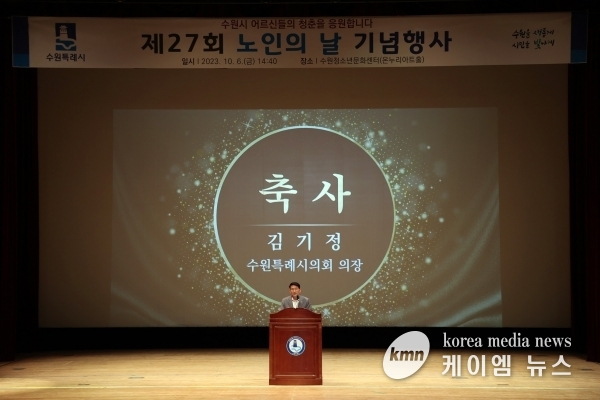 (케이엠뉴스) 수원특례시의회가 10월 6일 오후 수원청소년문화센터 온누리아트홀에서 열린 ‘제27회 노인의 날’ 기념식에 참석해 어르신에게 공경과 감사의 마음을 전했다.