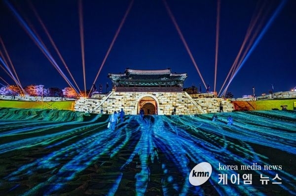 성문과 성곽은 물론 드넓은 잔디밭까지 스크린으로 활용해 창룡문 앞 잔디밭에 다양한 색감의 빛으로 알록달록한 그림이 그려진다.