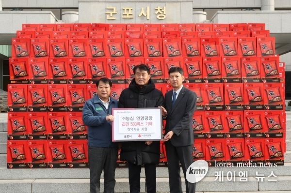(케이엠뉴스) ㈜농심 안양공장은 지난 18일 군포시청에 라면 500박스를 기탁했다.