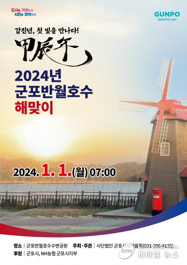 (케이엠뉴스) 군포시 반월호수에서 오는 1월 1일 오전 7시 2024년 갑진년 해맞이 행사가 열린다.