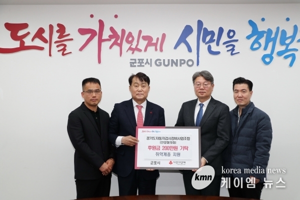 (케이엠뉴스) 지난 30일 경기도자동차정비정비사업조합 안얀지역협의회가 지역 내 어려운 이웃을 위해 사용해 달라며 설맞이 이웃돕기 후원금 200만원을 군포시에 기탁했다.