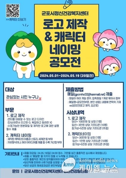 (케이엠뉴스) 군포시정신건강복지센터에서 센터를 대표하는 로고를 제작하고 캐릭터 네이밍 공모전을 개최했다.
